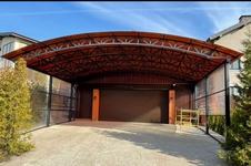 Металлический арочный автонавес с поликарбонатом оранжевого цвета