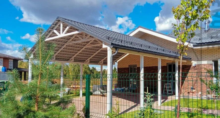 Навес автомобильный из металлочерепицы двускатный для дома (окрас RAL)
